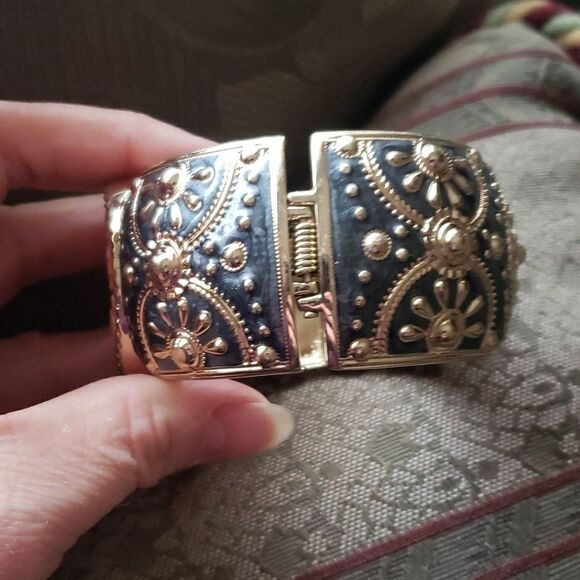 Gray Enamel goldtoned hinged bracelet