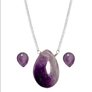 Silver necklace with amethyst stone pedant and amethyst earrings.