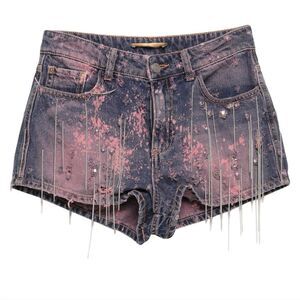 Denim Jeans Shorts with chains and rhinestone, acid wash
