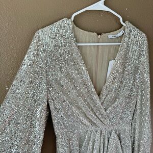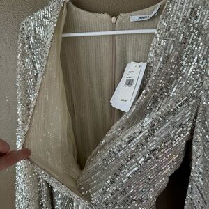 AMEN couture paillettes sequin beaded silver long sleeve mini dress NWT H