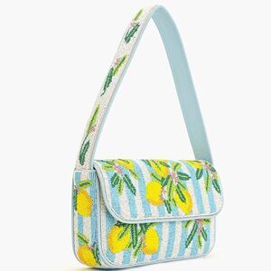 NWT! America & Beyond Limoncello Stripe Beaded Shoulder / Clutch Bag. When life gives you lemons, carry them in style!. You may NOT receive the exact pattern of the beading showcased in the photos, all bags can differ per the tags.