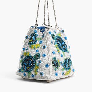 NWT! America & Beyond Terrain Bucket Beaded Shoulder Bag. Dive into a sea of style with the Marine Terrain Bucket Bag – a charming bag with adorable tortoise embroidery, this bag is a delightful blend of playful charm. You may NOT receive the exact pattern of the beading showcased in the photos, all bags can differ per the tags.