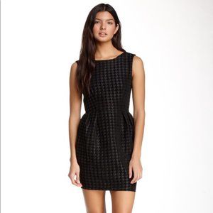 Style: Shift dress with front and back pleats, back zipper, houndstooth pattern, mini length