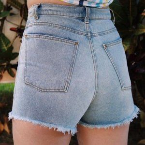 AMERICAN APPAREL USA Women's Light Blue Washed Denim Jean Shorts 26 Raw Hem Sexy