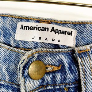AMERICAN APPAREL USA Women's Light Blue Washed Denim Jean Shorts 26 Raw Hem Sexy Features - Belt loop, Raw Hem, Mid rise, Stretchable, Zipper fly, Button closure, Side vent