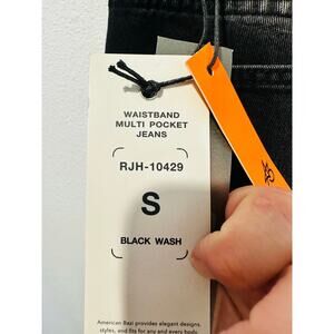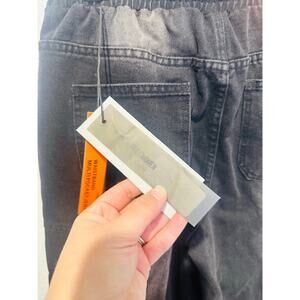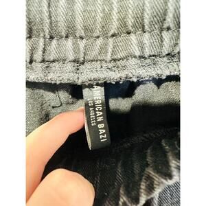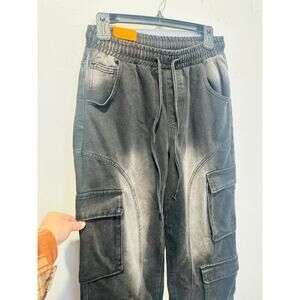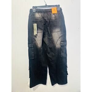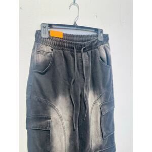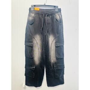 AMERICAN BAZI Black Washed Wide-Leg Cargo Style Drawstring Pants NWT size Small