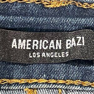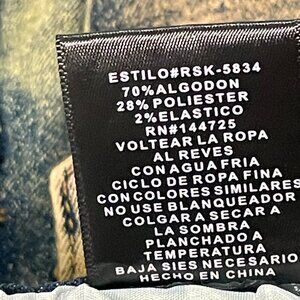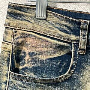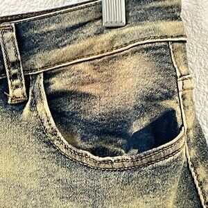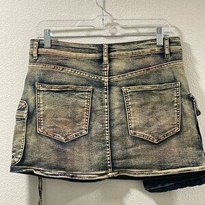 AMERICAN BAZI Denim Mini Skirt Cargo Pockets Over-dyed Distressed Blue Size L