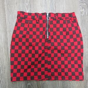 AMERICAN BAZI Mini Skirt Size M Women Red/Black Check with Zipper Streetwear