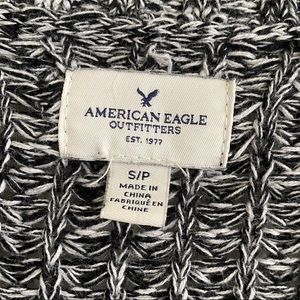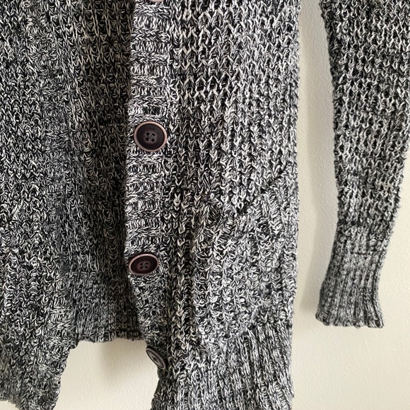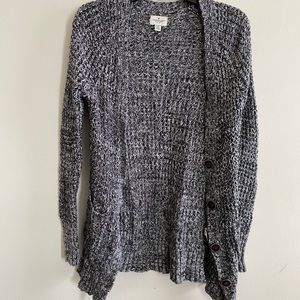 American eagle. Grey, back and white blended cardigan. Goes great with lots of outfits! Pockets on the front and buttons on the edge (shown in picture)