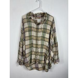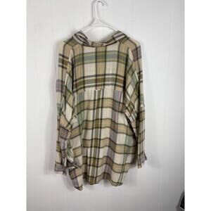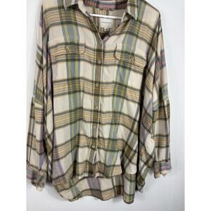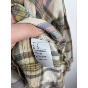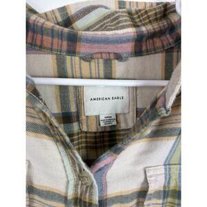 AMERICAN EAGLE AE OVERSIZED PLAID FLANNEL SHIRT WOMENS SMALL TAN BUTTON UP TOP