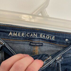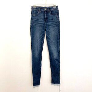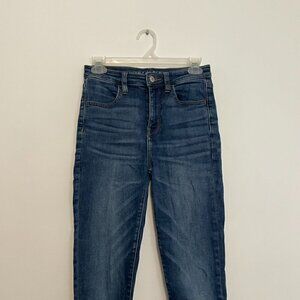 AMERICAN EAGLE AE Super Stretch Super Hi-Rise Jegging Crop Dark Raw Hem Cropped
