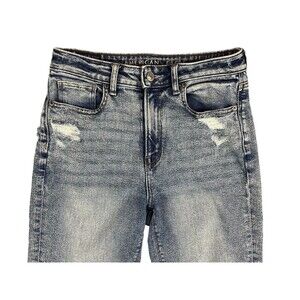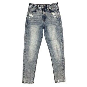 AMERICAN EAGLE AEO Women's 2 Hi-Rise Mom Tapered Jeans Distressed Stretch Denim