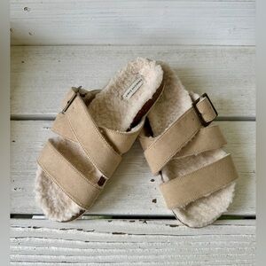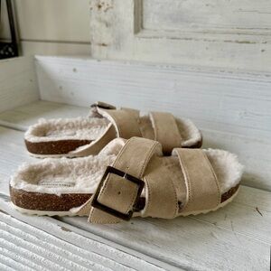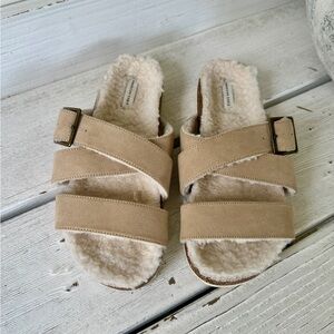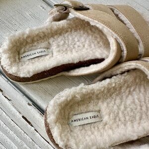 AMERICAN EAGLE, BIRKENSTOCK, SHEARLING SANDAL. NO SIZE. 10” X 3 3/4”