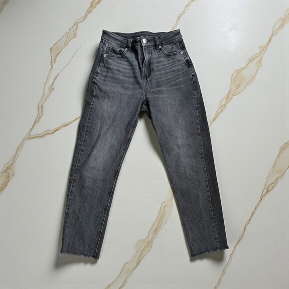 These stylish American Eagle jeans feature a sleek black-gray wash, perfect for any casual or semi-formal occasion. With a size of 000 Short, they offer a unique fit for petite individuals looking to make a fashion statement.
