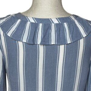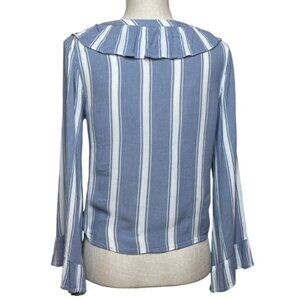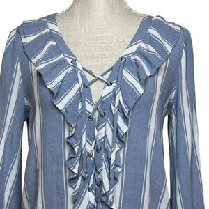 AMERICAN EAGLE Blue & White Striped Lace-up Ruffled Top - Size Small
