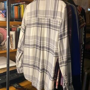 White and grey plaid soft flannel shirt in a boyfriend fit