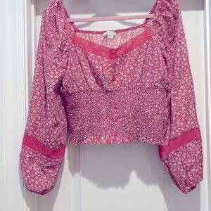 AMERICAN EAGLE CROP TOP SIZE M LS SCOOP LACE FLIRTY CROPPED PEASANT STYLE