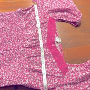 American Eagle size medium crop top with flirty lace details, tiny buttons down the front, machine cold water wash, dry on low. Ruched detail with gathered bottom. The closest color in the last photo “Magenta”.