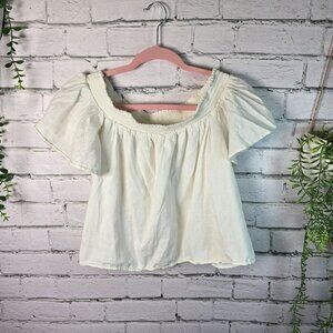 AMERICAN EAGLE CROPPED PEASANT TOP SMOCKED NECKLINE WHITE WOMENS SIZE MED