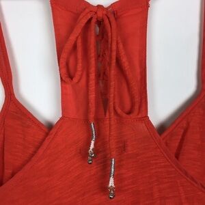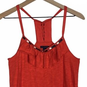 AMERICAN EAGLE Cami Tank Top Embroidered Beads Boho Ruffle Lace Up Back Size XS
