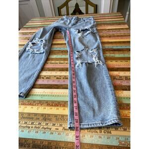 AMERICAN EAGLE Curvy 90s Straight Denim Blue Jeans Sz 00 Distressed Med Wash