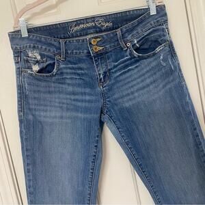 AMERICAN EAGLE • Denim Blue Distressed Straight Jeans