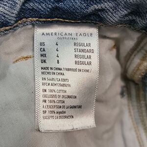Pre-owned American Eagle distressed relaxed jeans size 4. Classic 5 pocket style with zip and button closure.