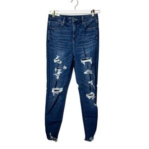 AMERICAN EAGLE Dream Jean Stretch Highest Rise Women SZ 4 Distressed Raw Hem Y2K