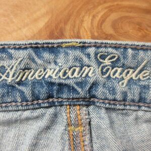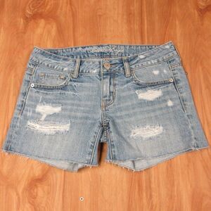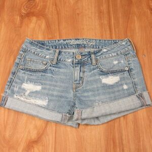 AMERICAN EAGLE Frayed Hem Cuffed Jean Shorts Womens Sz 4 Ripped Destroyed Denim