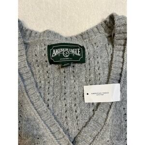 AMERICAN EAGLE Gray Grey Cardigan Chunky Cropped Grandpa Sweater Twee MEDIUM