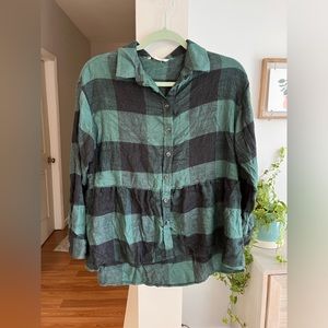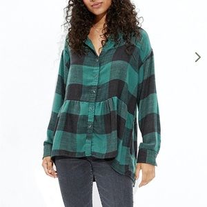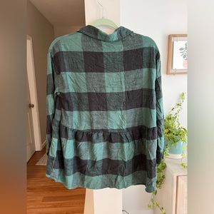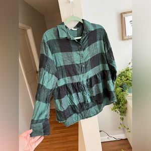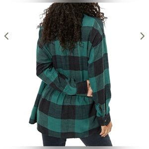 AMERICAN EAGLE Green And Black Checkered Oversized Button Down Tunic Top