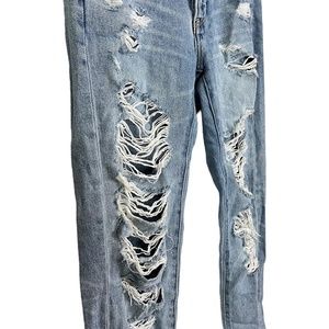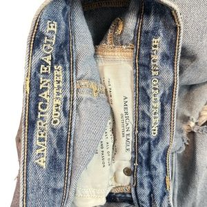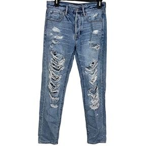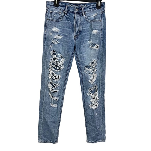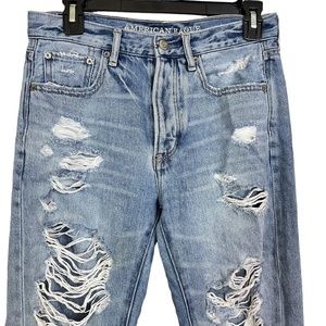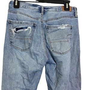AMERICAN EAGLE HI-RISE GIRLFRIEND Distressed Medium Blue Wash Zip Fly Jeans sz 2