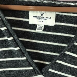AMERICAN EAGLE Heathered Striped V Neck Split Hem Pullover Hoodie Sweatshirt M