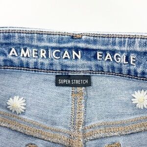 ✅ AMERICAN EAGLE Hi Rise Shortie Embroidered Daisy Stretch Denim Shorts SIZE 0
