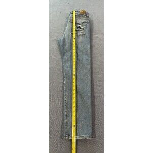 Add some edge to your wardrobe with these high-rise distressed mom jeans from American Eagle Outfitters. The jeans feature a solid pattern, 5-pocket design with button and zipper accents, and a high rise fit that flatters any figure. The cotton blend denim fabric comes in a light wash and is suitable for all seasons.