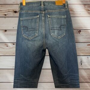 American Eagle Jeans Blue Denim Hi-Rise Jegging Skinny Leg Distressed dark Wash stretchy (2430)