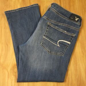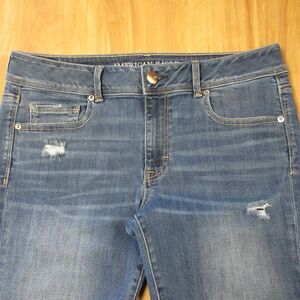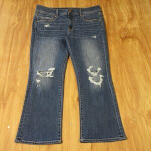 AMERICAN EAGLE Kick Crop Ripped Jeans Womens Sz 14 Distressed Stretch Blue Denim