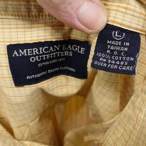 AMERICAN EAGLE LONG SLEEVE YELLOW CHECK BUTTON DOWN SHIRT MENS SIZE L VTG
