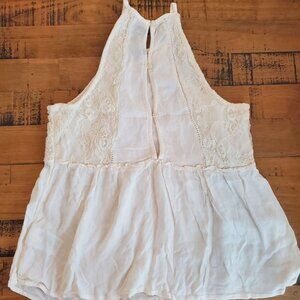 AMERICAN EAGLE Lace Button-Down Back Cream Halter Tank Top Shirt Boho XS