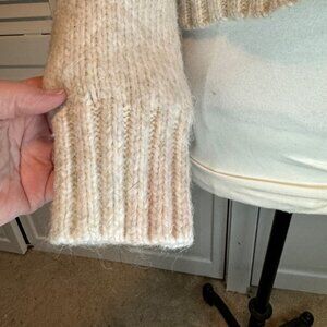 Cream, pink and orange, button up v-neck sweater, ribbed cuffs and hem, pit to pit 21”, length 21”