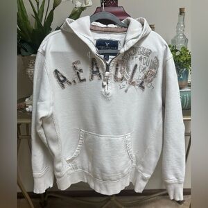 AMERICAN EAGLE MENS DISTRESSED FRAYED HALF ZIP Y2K CASUAL HOODIE SWEATSHIRT SZ L
