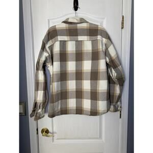 Cream and tan plaid; excellent pre-owned condition. Washed and line dried. Approx. Measrmts: