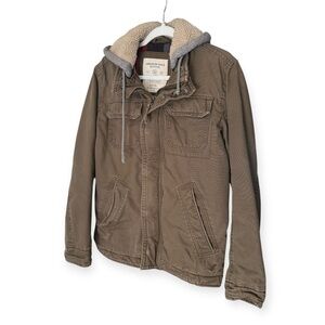AMERICAN EAGLE Men's Olive Green Cotton Utility Field Jacket w/Sherpa Hood Small
