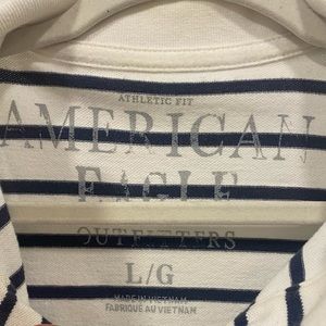 AMERICAN EAGLE Men’s Polo Shirt WHITE BLUE Striped Athletic Fit Size LARGE