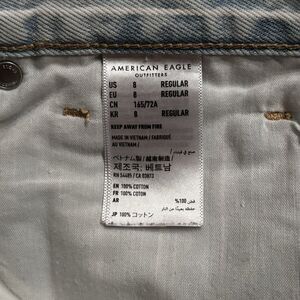 AMERICAN EAGLE Mom Jean 8 Regular High Rise Light Wash/White Stripe #549078