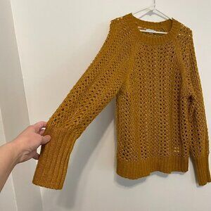 AMERICAN EAGLE Mustard Yellow Golden White Open Knit Chunky Oversized Sweater M