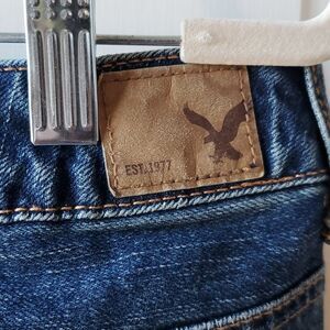 AMERICAN EAGLE OUTFITERS AEO JEAN DENIM SHORTS SIZE 8 MIDRISE RIGID 100% COTTON