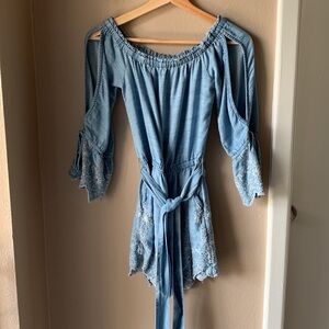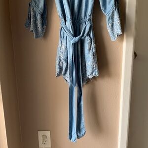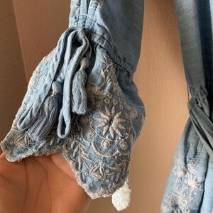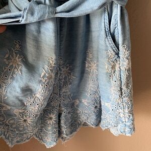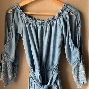 Description: American Eagle Outfitters Chambray 3/4 Sleeve Embroidered Romper