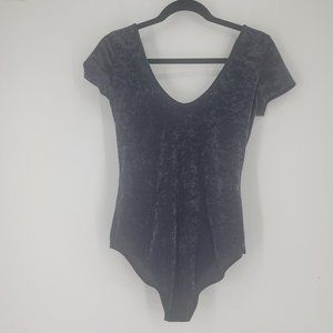 AMERICAN EAGLE OUTFITTERS Gray Velvet Bodysuit Short Sleeves Women's Medium