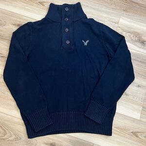 AMERICAN EAGLE OUTFITTERS QUARTER ZIP PULLOVER BLUE SWEATER SIZE MEDIUM